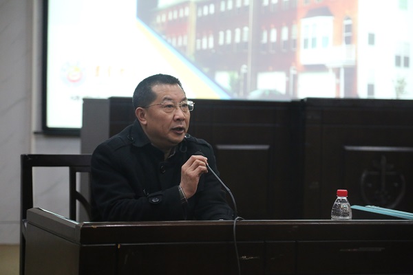 图为曹福明副院长传达省厅会议精神 见闻摄