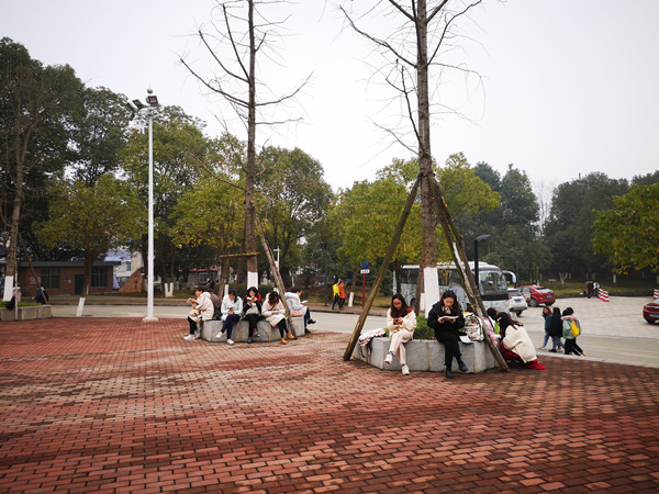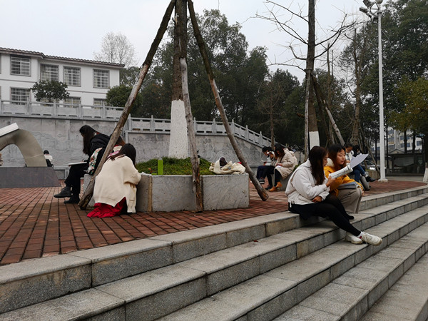 上图为开学第一天张家界校区文化广场晨读现场 田晨钰摄