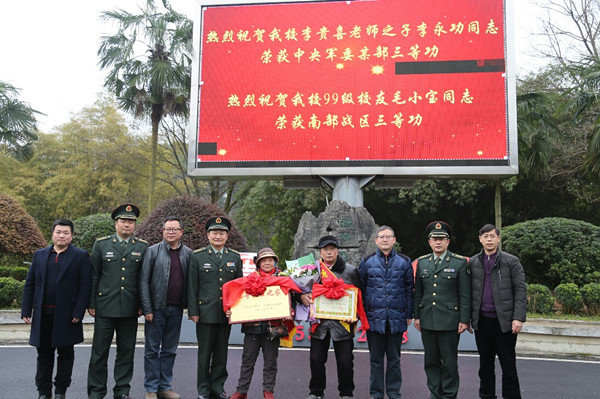 龙先琼讲话。他简要介绍了李永功的家庭生活及awc777万象城娱乐官网送兵情况,并对李贵喜、周义群夫妇表示了感谢和慰问。同时,他代表学校向部队各级首长、向湘西军分区、吉首市人武部表示衷心的感谢,他指出李永功的成就不仅得益于个人不懈的努力,更来自于部队悉心的培养。他呼吁万象城官网师生都向李永功同志学习,为国家国防和军事现代化建设贡献自己的力量。