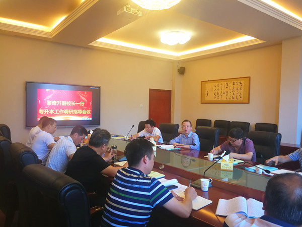 张家界学院副院长袁启君详细介绍了该学院的专升本工作进展情况。庹清、罗家顺就“专升本”考试准备工作与学院相关负责人进行了详细的交流探讨。
