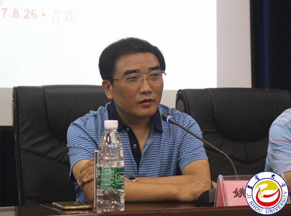 图为省高师培训中心主任姚新良发言 石慧琳摄