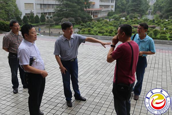 图为校领导在图书馆检查现场 翁凯摄