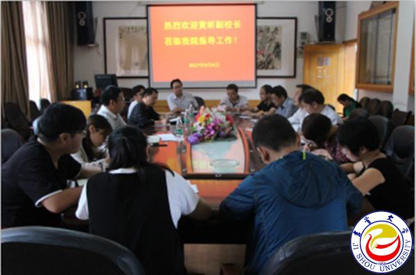 听取汇报后,黄昕对学院近期工作取得的成果表示肯定。同时,他对该院本学期工作提出三点要求:第一,加强本科教学评估工作,深入了解学校审核评估的基本要求和院内的教学特色,要做到全力以赴、面面俱到;第二,全面部署科研工作,加强平台建设,要做到未雨绸缪并保持传统优势;第三,全面做好师生服务工作,加强党建工作,增强师生的荣誉感、归属感,要做到一流的教学、建设一流的学院。