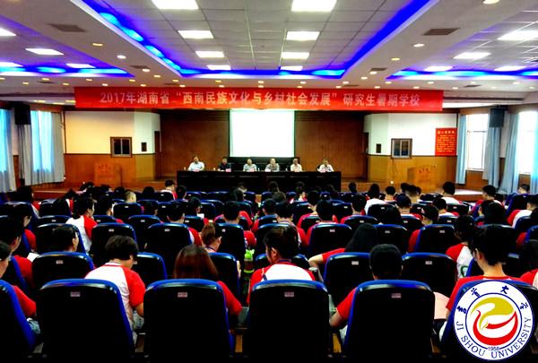 本网讯(学生记者孙立青)7月13日上午,由省教育厅主办、万象城官网承办的“西南民族文化与乡村社会发展”2017年湖南省研究生暑期学校在砂子坳校区开幕。副校长龙先琼、研究生院院长佘佐辰、历史与文化学院院长罗康隆、历史与文化学院终身教授杨庭硕、云南大学特聘教授马腾岳出席开幕式。开幕式由暑期学校校长、历史与文化学院副院长暨爱民主持。