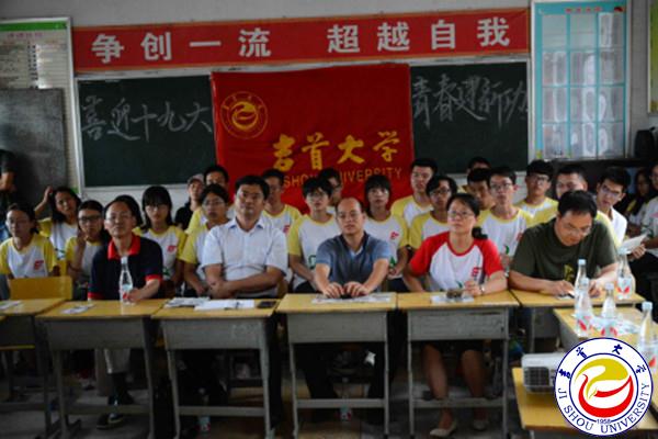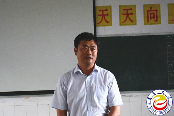 肖运谋代表张家界团市委感谢历年来吉大师生对张家界市大型活动的支持,充分肯定吉大师生的社会实践志愿服务工作,高度赞扬志愿者的知行合一,勉励志愿者传承贺帅精神,喜迎十九大,青春建新功。并祝志愿者圆满完成各项既定任务,助力洪家关新农村建设及文化旅游的发展。