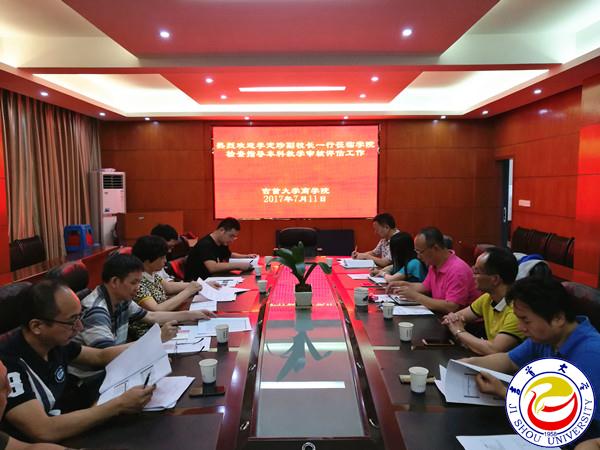 本网讯(商学院供稿)7月11日,副校长李定珍率专家组一行到商学院进行第二轮本科教学审核评估现场检查。商学院党政联席会全体成员、教研室主任、实验室主任、学工办主任参加了汇报会。
