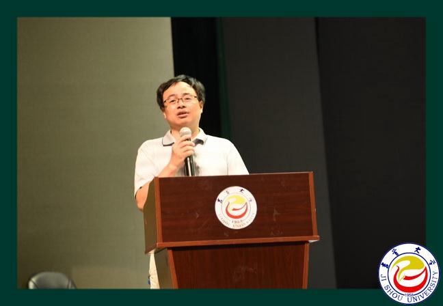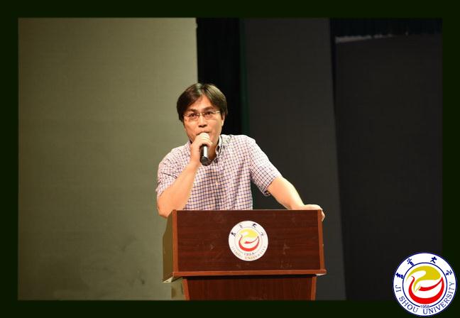 图为资产处副处长刘洪做房屋抽号说明(摄影 洪雄)