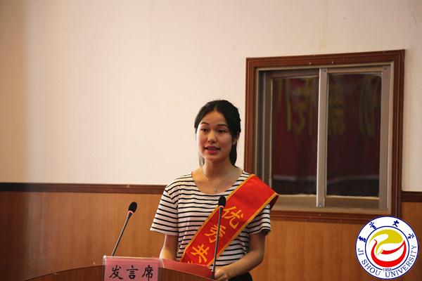 图为优秀学生党员代表孙艳芳同学发言 翁凯摄