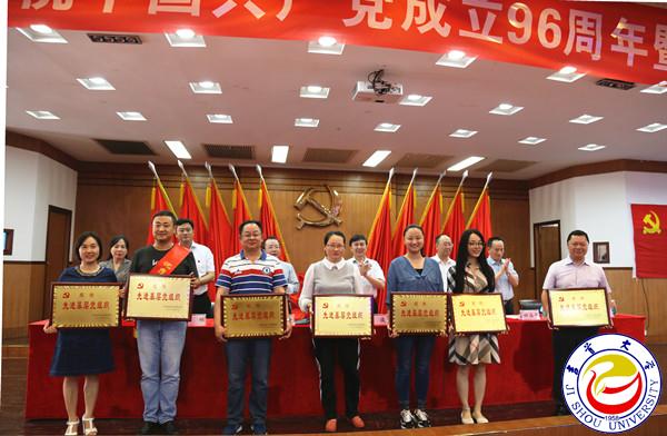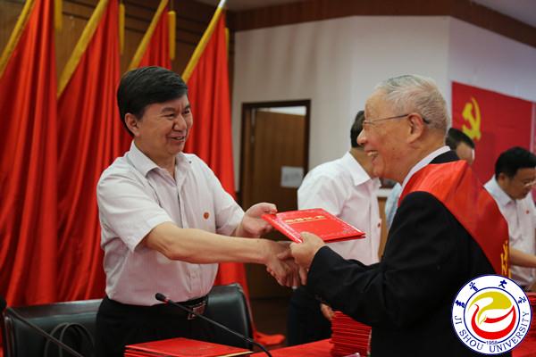 图为校领导为优秀共产党员代表颁奖 翁凯摄