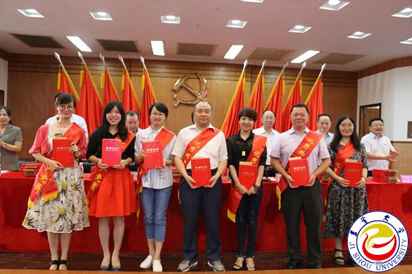 马克思主义学院党委书记朱廷岚,外国语学院党委学生第一党支部书记冯蕾同学代表先进基层党组织发言,数学与统计学院党委书记戴军,文学与新闻传播学院党委李端生教授,张家界学院孙艳芳同学分别代表优秀党务工作者、优秀教师共产党员、优秀学生共产党员发言,交流党建工作经验和成果,分享入党心路历程与成长感悟,并庄严承诺:不忘入党初心,继续光荣前进。