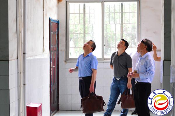 图为黎奇升、冷志明一行在大田湾校区检查