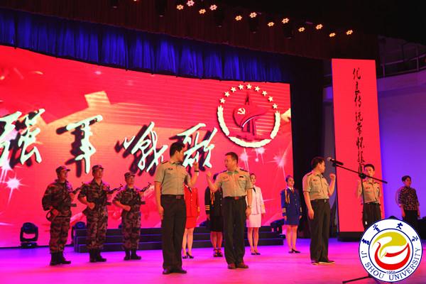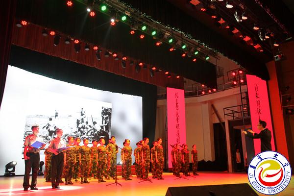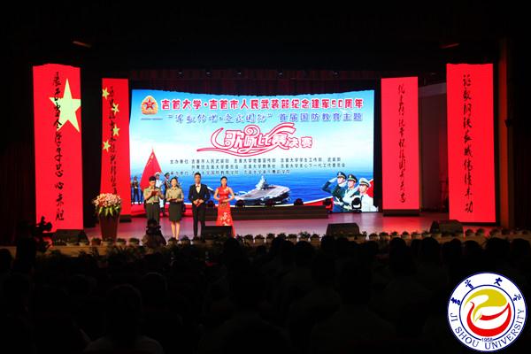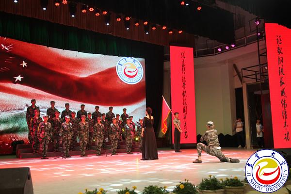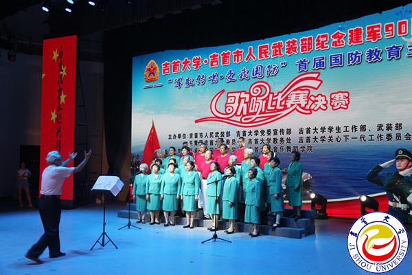 本网讯(见闻)为纪念中国人民解放军建军90周年,深入开展“赞颂辉煌成绩,赓续红色基因,支持改革强军”主题教育活动,万象城官网与吉首市人民武装部联合举办的首届“军歌传唱•爱我国防”国防教育主题歌咏比赛于近期隆重举行。6月18日下午,全校进入决赛的10支参赛队伍英姿飒爽,亮相砂子坳校区民族音乐舞蹈表演实验剧场,“讴歌钢铁长城伟绩丰功,展示当今学子忠心赤胆”。