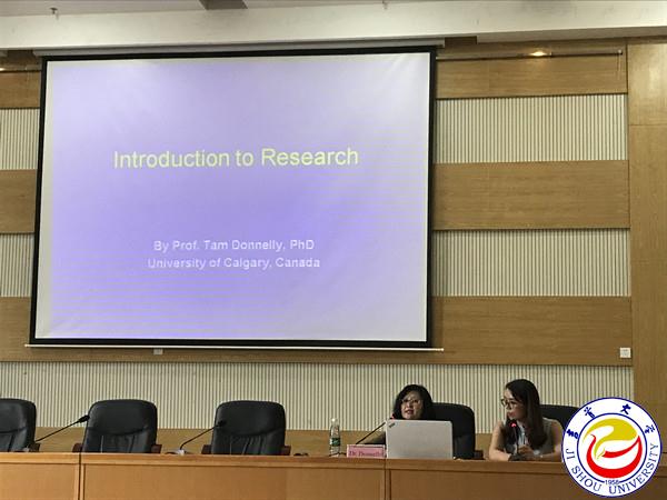 随后,Donnelly教授以“Introduction to Research”为主题,深入浅出、风趣幽默地为在场200余名来自医学院护理系教师、附属医院的护理人员、护理专业本科生进行了宣讲。Donnelly教授强调护理研究是护理人员通过遵循一定的科研步骤获取信息,以解决在护理过程中所遇到的问题。护理研究需要根据临床、教学研究中所实施的护理措施以及护理教学研究方法为科学依据,进行“循证护理”。通过各种研究找出最有效的提高国民健康水平的方法。建议在校学生积极参与到教师研究中,并告诫学生在护理研究中还应具有评判性思维。 Donnelly教授还详细地介绍了北美地区护理研究的发展历史,研究的热点以及如何撰写科研论文。