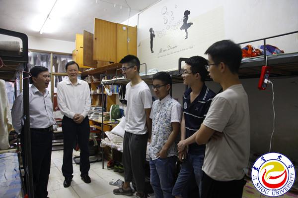 本网讯(学生记者宋林凤)又到一年毕业季,带着对2017届毕业生的牵挂和美好祝福,6月7日晚,校党委书记游俊、校长白晋湘在校办、学工部、保卫处、后勤处等相关单位负责人的陪同下,深入学生宿舍走访慰问毕业生,为全体毕业生送去离别前的关怀和祝愿。