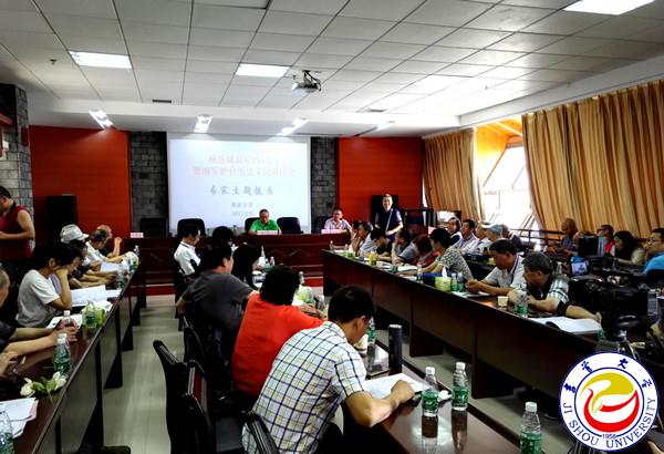 开幕式后,与会人员在齐鲁大楼影视人类学实验室举行了学术研讨会。伍继延、龙文玉、张建永、岳麓书社编辑部刘文、武陵山区发展研究院吕华明分别作了题为《奋起卫道,捍卫统一——“湘军保卫台湾历史研讨会”的启示》、《回忆光荣史 讴歌民族魂》、《湘军文化影响》、《湘军护台文献的出版》和《杨岳斌籍贯小考》的主题报告。与会人员围绕杨岳斌研究专题、湘军护台历史专题、爱国主义文化等专题进行了探讨。武陵山区发展研究院院长张登巧、历史与文化学院党委书记瞿州莲先后担任主持。