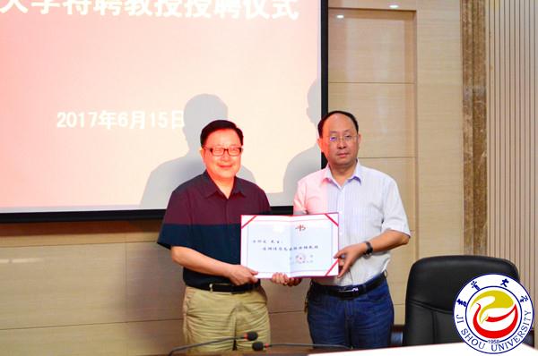 图为赵鹤平书记为方卯发教授颁发聘书 孙立青摄