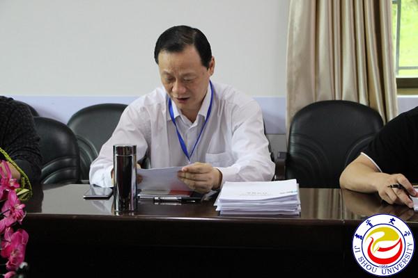 评估会上,汤敬安就学院本科教学工作审核评估自评自建工作作了汇报,他从学院的办学定位、人才培养目标、教师队伍、教学资源、培养过程、学生发展、质量保障、特色项目以及存在的问题及改进措施等方面作了详尽的讲解。