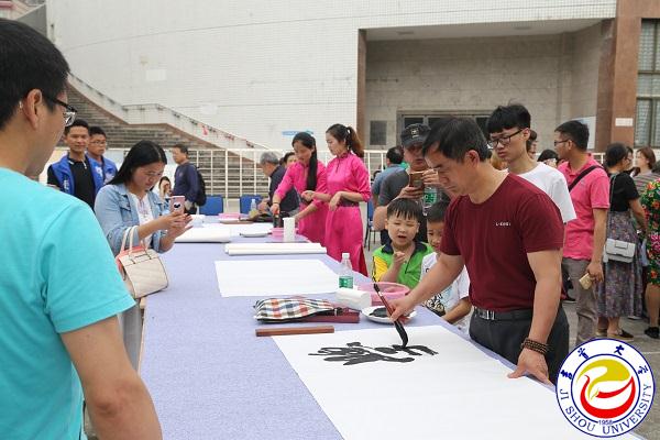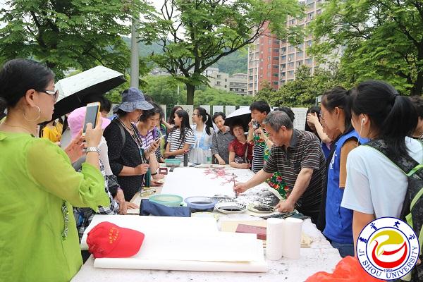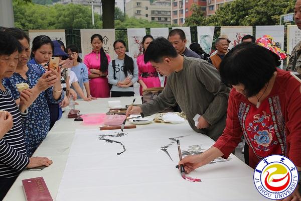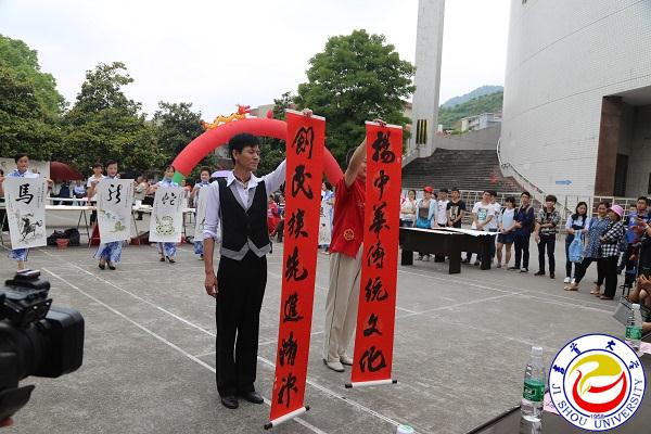 本网讯(见闻)5月20日,新校区体育馆前,翰墨飘香,名家荟萃,“传承传统 爱我湘西”湘西书画名人进校园活动在这里隆重举行。湘西州人大原副主任、州老年书画协会会长彭司礼,湘西州文联副主席罗应奉,万象城官网副校长龙先琼及相关职能部门负责人,湘西著名书画家林时九、毛光辉、王焕林,万象城官网97岁高龄的书家彭秀模先生等与广大书法爱好者欢聚一堂,传播优秀传统文化,共赏书画艺术瑰宝。
