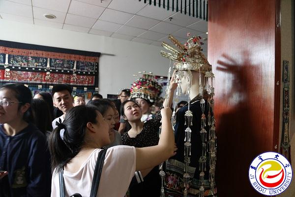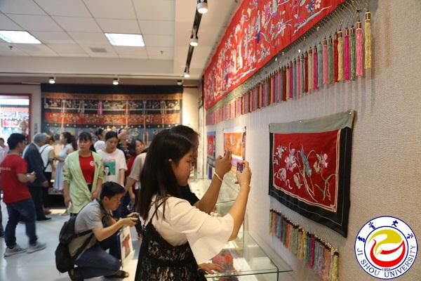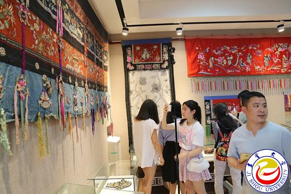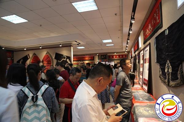 随后,与会领导、嘉宾和300余名师生与社会各界人士在现场工作人员带领下,有秩序地走进展厅,欣赏苗族不同时期的经典苗绣藏品,了解苗族灿烂的历史文化。