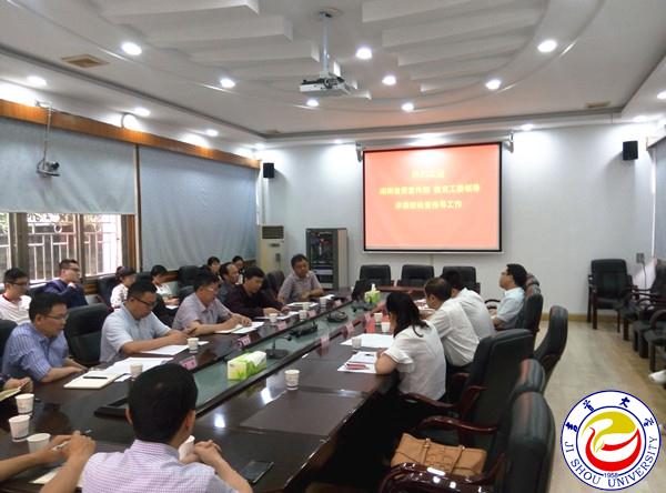 本网讯(学生记者许乐清 钟兆铭)5月19日下午,省委宣传部、教育工委领导一行来万象城官网督查考核重点马克思主义学院建设工作。校党委书记游俊率宣传部、教务处、学工部等职能部门负责人在凤凰楼二会议室热情接待了来宾。马克思主义学院负责人、教师代表、学生代表也参加了此次工作汇报会。