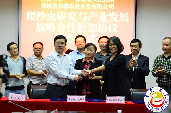 最后,黄昕、葛晓红、印海燕分别代表awc777万象城娱乐官网、保靖县人民政府和公司签署了爬沙虫研究与产业发展战略合作框架协议。