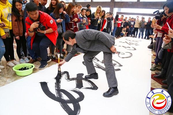 开幕式现场,中国文化艺术研究院院长、中国书画艺术研究院常务副院长、院士徐双喜先生为在现场观展的领导、嘉宾以及该院师生现场创作榜书书法作品《风景这边独好》,令在场人员赞叹不已,拍手称绝。