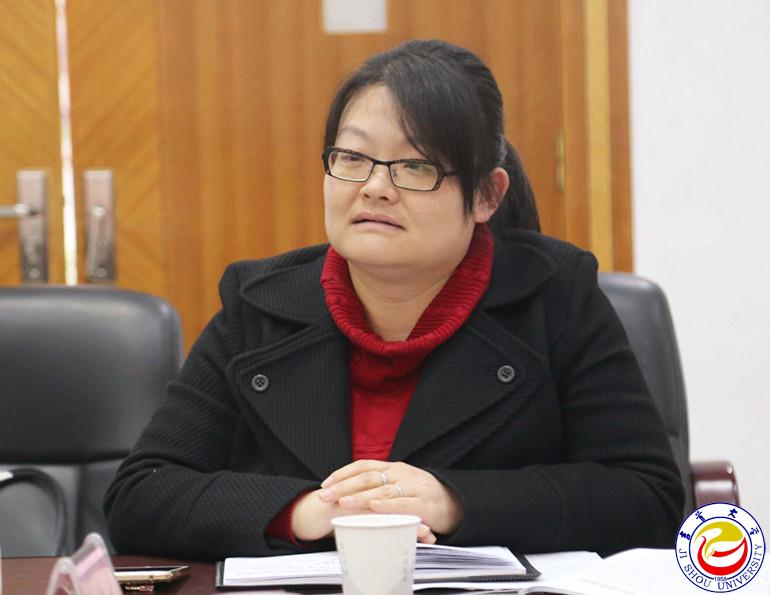 图为龙先琼副校长介绍情况 李兰摄