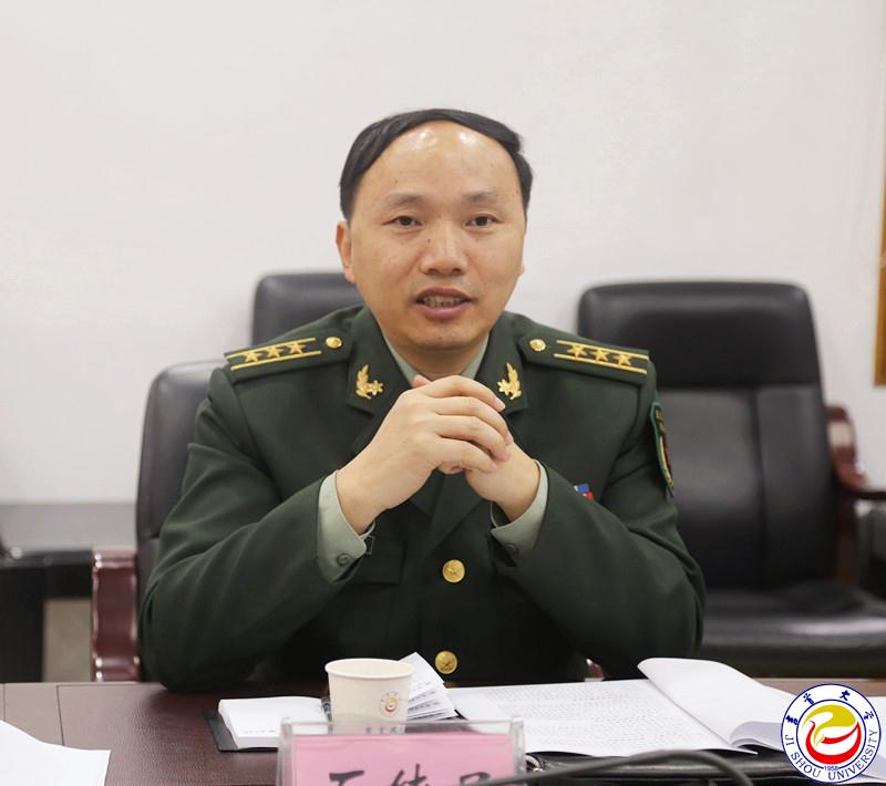 上午,贾启龙、石纯民在吉首军分区政治部彭炎林中校、刘海干事的陪同下,在万象城官网凤凰楼二会议室与校领导游俊、龙先琼,宣传部部长戴林富,学工部、武装部部长周华忠,国防教育学院院长王群立,国防教育研究院院长、学科带头人李先德,党委办公室副主任尚道文,以及国防教育学院的部分师生代表举行了座谈。
