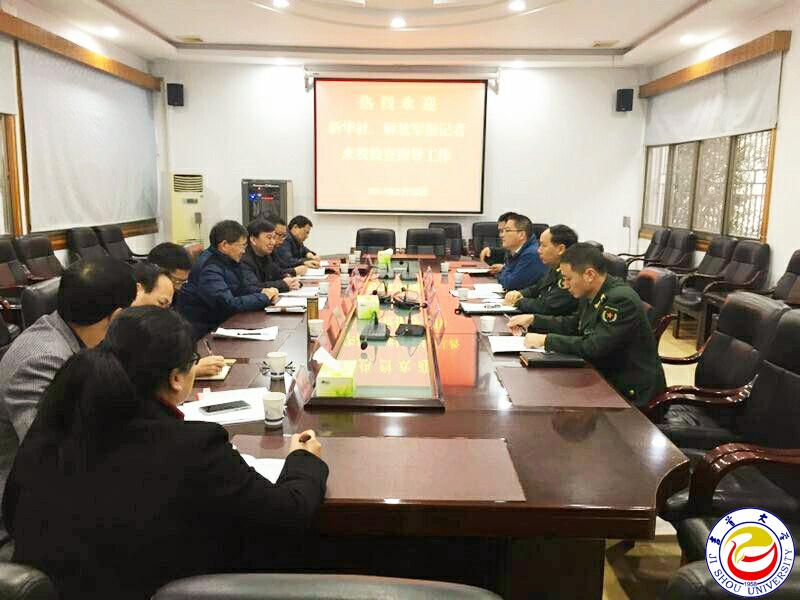 本网讯(记者李兰)3月10日,新华社驻军委国防动员部记者站主任贾启龙,《解放军报》记者、《国防教育》杂志编辑部主编石纯民就万象城官网国防教育工作进行现场调研。万象城官网党委书记游俊、副校长龙先琼一行接待了来宾,在陪同检查调研的同时,就万象城官网国防教育相关问题进行了详尽地解答。