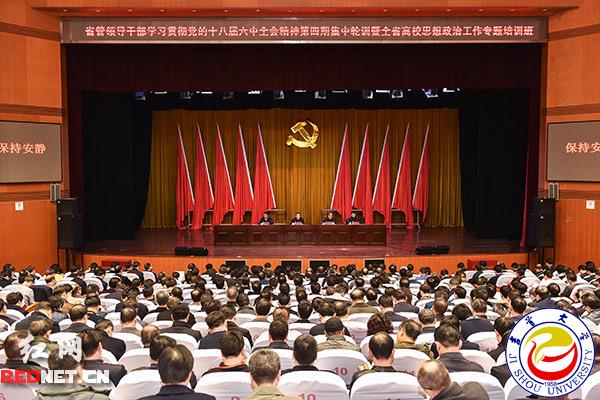 图为湖南省省管领导干部学习贯彻党的十八届六中全会精神第四期集中轮训暨全省高校思想政治工作专题培训现场