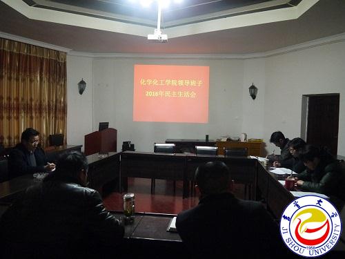 本网讯(华骏)1月11日,化学化工学院领导班子在该院会议室召开了2016年民主生活会,学院领导班子成员全部参会。校党委委员、副校长冷志明到会指导,学院党委书记彭水英主持会议。