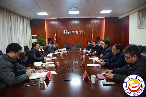 彭进清介绍了湖南商学院的基本情况,重点介绍了校园建设、维修改造、人事制度改革、创新创业教育等方面的举措和取得的成效。