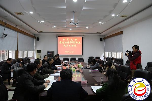 本网讯(记者翁凯)1月12日,学校党委领导班子在凤凰楼二会议室召开2016年度民主生活会。会议以学习贯彻党的十八届六中全会精神为主题,围绕“两学一做”学习教育要求,对照《关于新形势下党内政治生活的若干准则》和《中国共产党党内监督条例》,联系班子和个人实际,深入查找突出问题,深刻进行党性分析,严肃开展批评和自我批评。省教育厅徐伟副巡视员、发展规划处左清处长到会指导。全体校党委委员出席会议。校党委书记游俊主持会议。