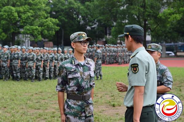 图为督查考评组在砂子坳校区新生军训现场实地调研 孙立青摄