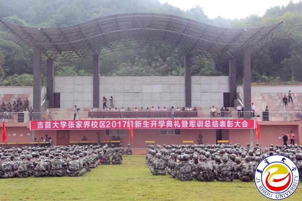 本网讯(学通社 龙钒 陈毫伟)9月26日上午,张家界校区2017年新生开学典礼暨军训总结表彰大会在校区田径场举行。市军分区戴林广处长,校党委书记游俊,校长白晋湘,副校长王绯、李定珍、罗金铭等出席典礼。