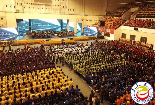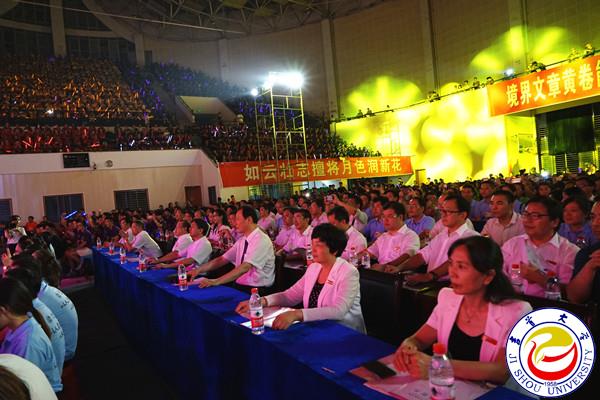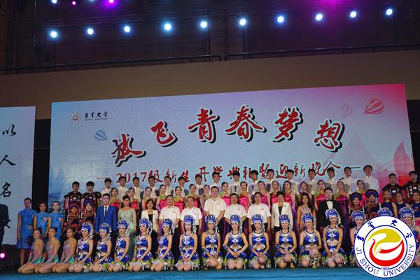 随后进行的迎新晚会,内容丰富,精彩纷呈。群舞《天堂草原》,气势磅礴;歌伴舞《烟花三月下扬州》,如梦似幻;情景剧《吉大生活初体验》,真实感人;小组唱《等我们都长大了》,优美动听;混声合唱《撒里啰》、女子群舞《数纱女》,风情浓郁;街舞表演《青春的舞步》、竞技健身操《unchan my heart》动感十足;歌伴舞《共筑中国梦》,震撼全场。晚会在全体师生合唱校歌中落下帷幕,熟悉的歌词,熟悉的旋律,引起师生们的深深共鸣。为方便全国各地的家长收看,晚会还开通了网络直播。