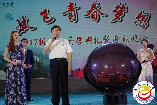 图为游俊书记宣布开学典礼暨迎新晚会正式开始 见闻摄