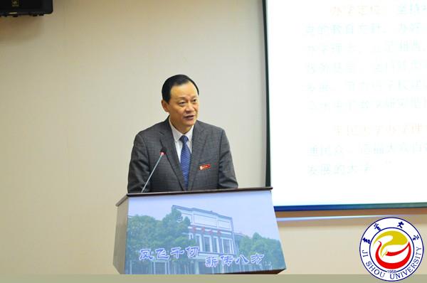 图为白晋湘校长作汇报 孙立青摄