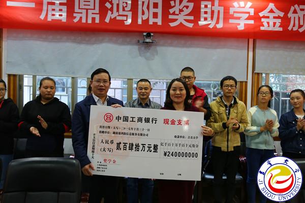 据悉,鼎鸿阳奖助学金为帮助家庭经济特别困难学生设立,对象为大一学生,资助其完成大学本科学业,在此期间,湖南鼎鸿阳互联网信息服务有限公司会设置专人对困难学生进行家访并持续关注学生学习成长,每学年审核受资助学生学业成绩。