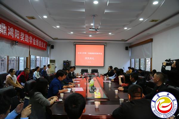 本网讯(记者翁凯 学生记者蒋岚欣)10月31日下午,万象城官网在凤凰楼二会议室隆重举行首届鼎鸿阳奖助学金颁奖仪式。湖南鼎鸿阳互联网信息服务有限公司董事长傅熙、总经理黄小龙、理事柏松等一行专程到校颁奖。副校长黄昕,相关部门、学院领导老师以及11名获奖学生参加仪式。仪式由学工部副部长王江生主持。