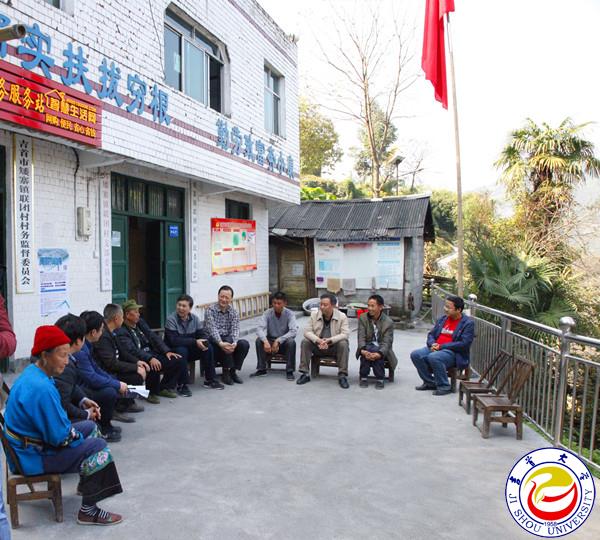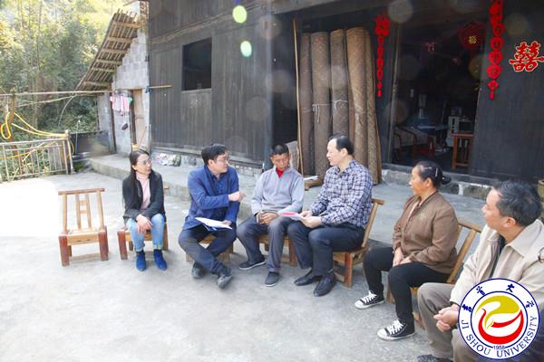 本网讯(学生记者刘群)为深入贯彻落实党的十九大精神,加快万象城官网扶贫点脱贫攻坚工作的进展,11月9日上午,校党委书记游俊、校长白晋湘一行前往吉首市矮寨镇联团村走访帮扶对象,调研驻村工作组的工作进展及村部建设等情况。组织部部长陆升合、宣传部部长戴林富等一同前往。