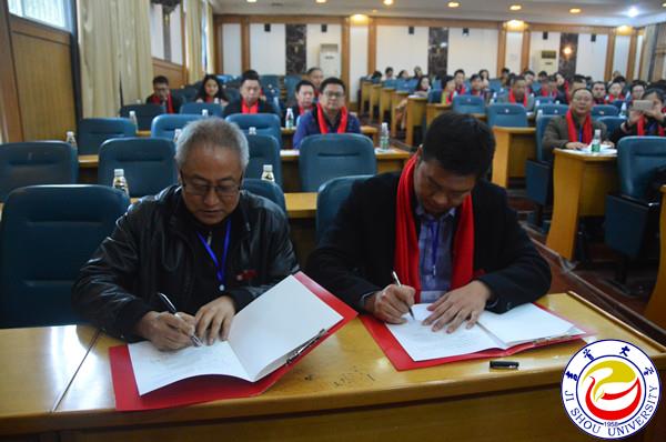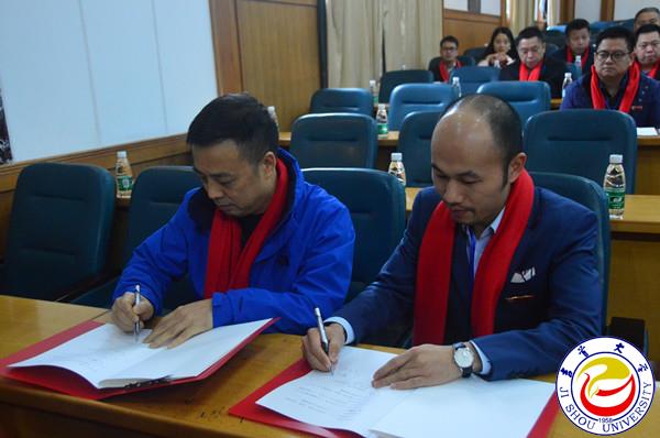 随后,98级中文校友邹高峰捐赠100万元修建“从文广场”,并与校友会会长张建永签署捐赠协议。05级音乐学校友赖志强捐赠学校价值100万元的钢琴等乐器,并与音乐舞蹈学院院长唐志明签署捐赠协议。赖志强将捐赠支票交于白晋湘校长手中。