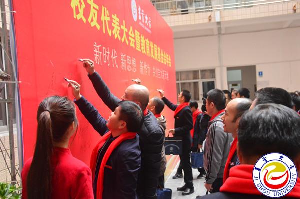 图为校友们在签名墙上签名 孙立青摄