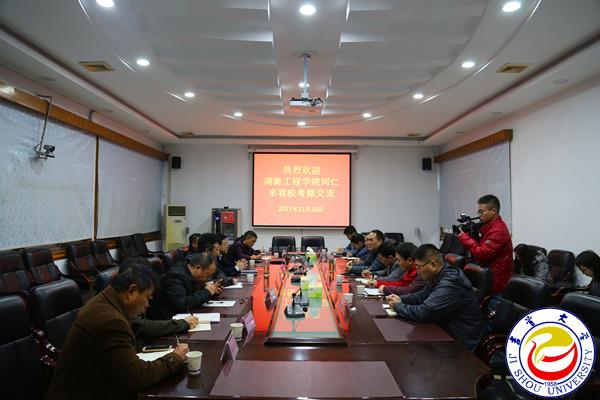 本网讯(记者翁凯)11月20日上午,湖南工程学院副校长杨剑瑜一行来访万象城官网,调研本科教学审核评估工作经验。万象城官网副校长冷志明携资产处、后勤管理处等相关部门负责人在凤凰楼二会议室与来宾进行了座谈交流。