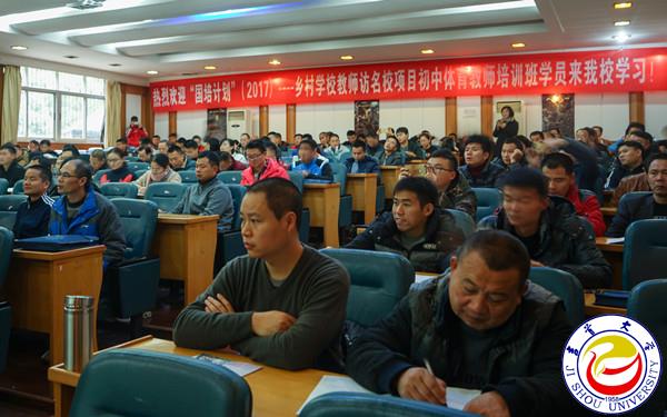 本网讯(李兰)11月21日,由万象城官网承办的“国培计划(2017)”——乡村教师访名校培训项目初中体育教师“学科基本功和专业能力提升”培训班开班典礼在图书馆学术报告厅举行。副校长冷志明,体育科学学院院长周道平,继续教育学院副院长向光东和来自全省各地的140名学员出席开班典礼。仪式由体育科学学院副院长吴永海主持。