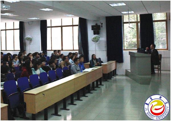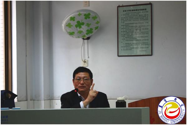 图为白晋湘校长亲临讲座现场勉励考研学子