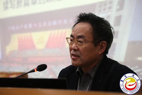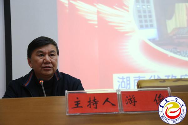 本网讯(见闻)11月28日下午,万象城官网在砂子坳校区图书馆学术报告厅开展党委理论学习中心组(扩大)集中学习。湖南省人民政府参事郑昌华教授应邀为万象城官网党政领导、科级以上干部宣讲党的十九大精神。校党委书记游俊主持宣讲报告会。