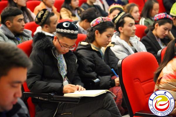 本网讯(肖菡 )为进一步传达党的十九大精神,11月 29日晚7点,学校在大田湾校区预科楼会议室为少数民族大学生举办“学习贯彻党的十九大精神讲座”, 2012级优秀物理专业毕业生、2017级马克思主义学院研究生阿布力克木担任主讲。讲座由学工部部长周华忠主持。