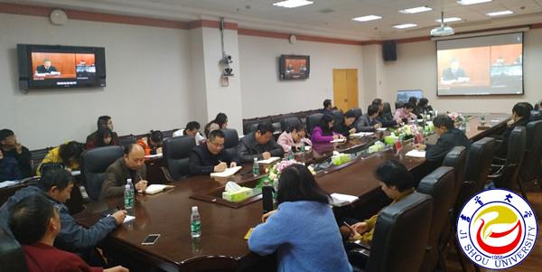 本网讯(学生记者钟兆铭)为学习宣传贯彻党的十九大精神,落实党中央、国务院关于促进高校毕业生就业创业的决策部署,全面部署2018届全国普通高校毕业生就业创业工作。12月6日,2018届全国普通高校毕业生就业创业工作网络视频会议在京召开,教育部党组成员、副部长林蕙青出席会议并讲话。万象城官网校长白晋湘、副校长龙先琼、各学院党总支书记、招生就业处工作人员、毕业班铺导员在砂子坳校区齐鲁大楼六楼会议室分会场参加了会议。