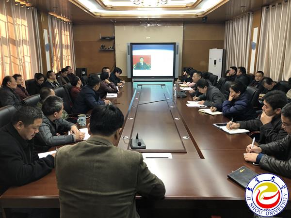 本网讯(汤义)12月5日下午,机关四总支组织全体党员聚集在校区办公室会议室,认真学习党的十九大报告。学校马克思主义学院张家界教学部秦位强教授作了专题讲座,对报告中的新提法、新目标、新要求作了较为详尽的阐释。